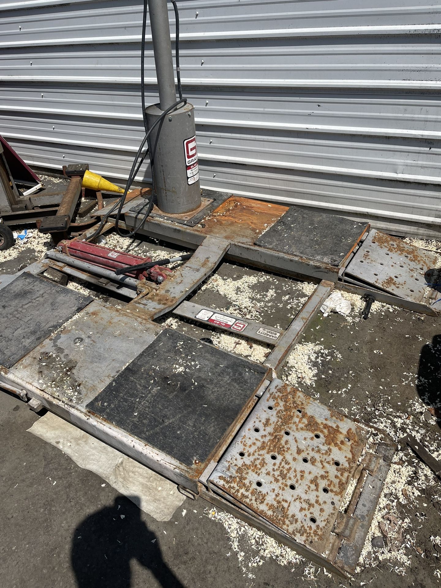 Air over hydraulic Gray car lift 6000 pound Capacity works good just no longer need