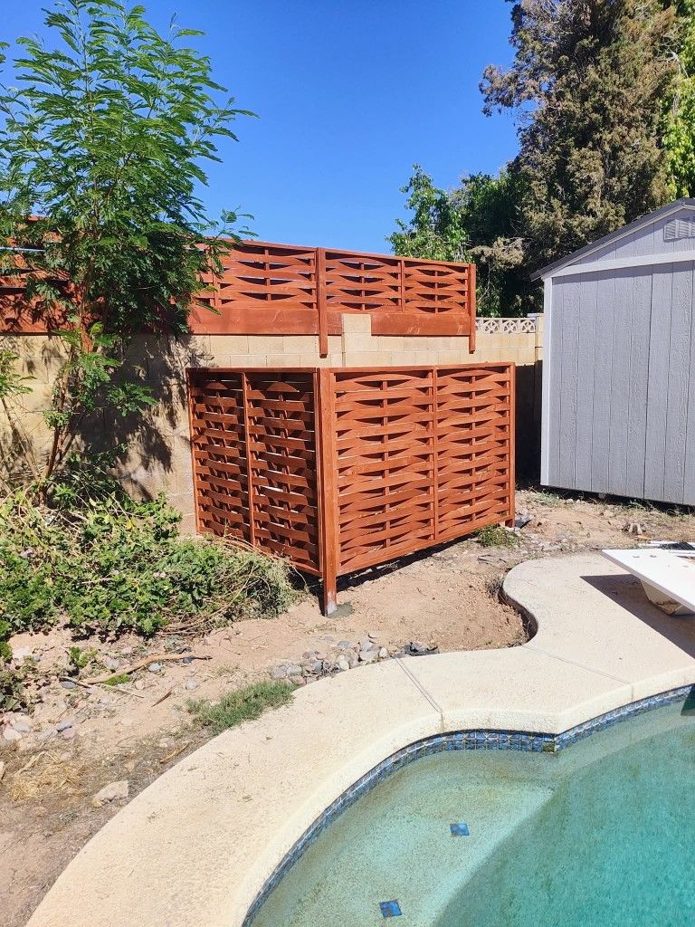 Pool equipment privacy Screens. Made to order Minimum price $400 or $600 depending on installation for L shaped privacy screen. Up to 4' high, up to 6' deep and up to 8' long.