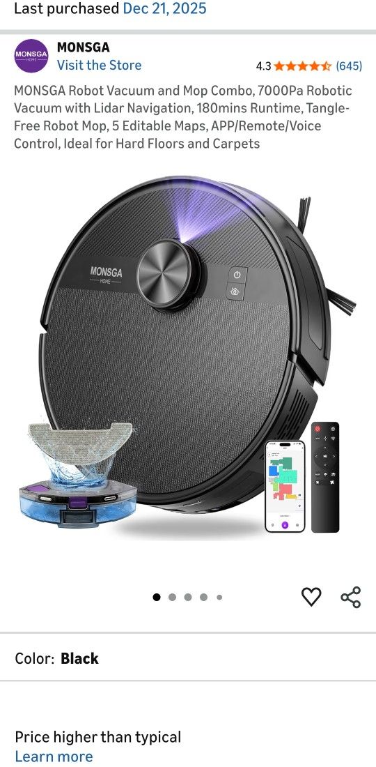 MONSGA Robot Vacuum & Mop Combo, 7000Pa w/Lidar Navigation APP/Remote/Voice (New)