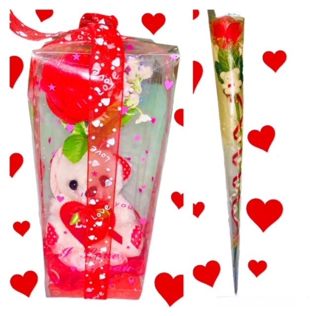 New with Tag • 2 piece Gift: 1) Teddy Bear with little red hat, holding heart with Red Rose behind him. In the sealed transparent box. 8”x3.5” 2) Long Stem single Rose with mini bear attached in front. In plastic packaging with curly ribbon. 14.5” • Great Mother’s Day Gift Smoke Free Pet Free Mother’s Day Valentine’s Day present Christmas birthday date