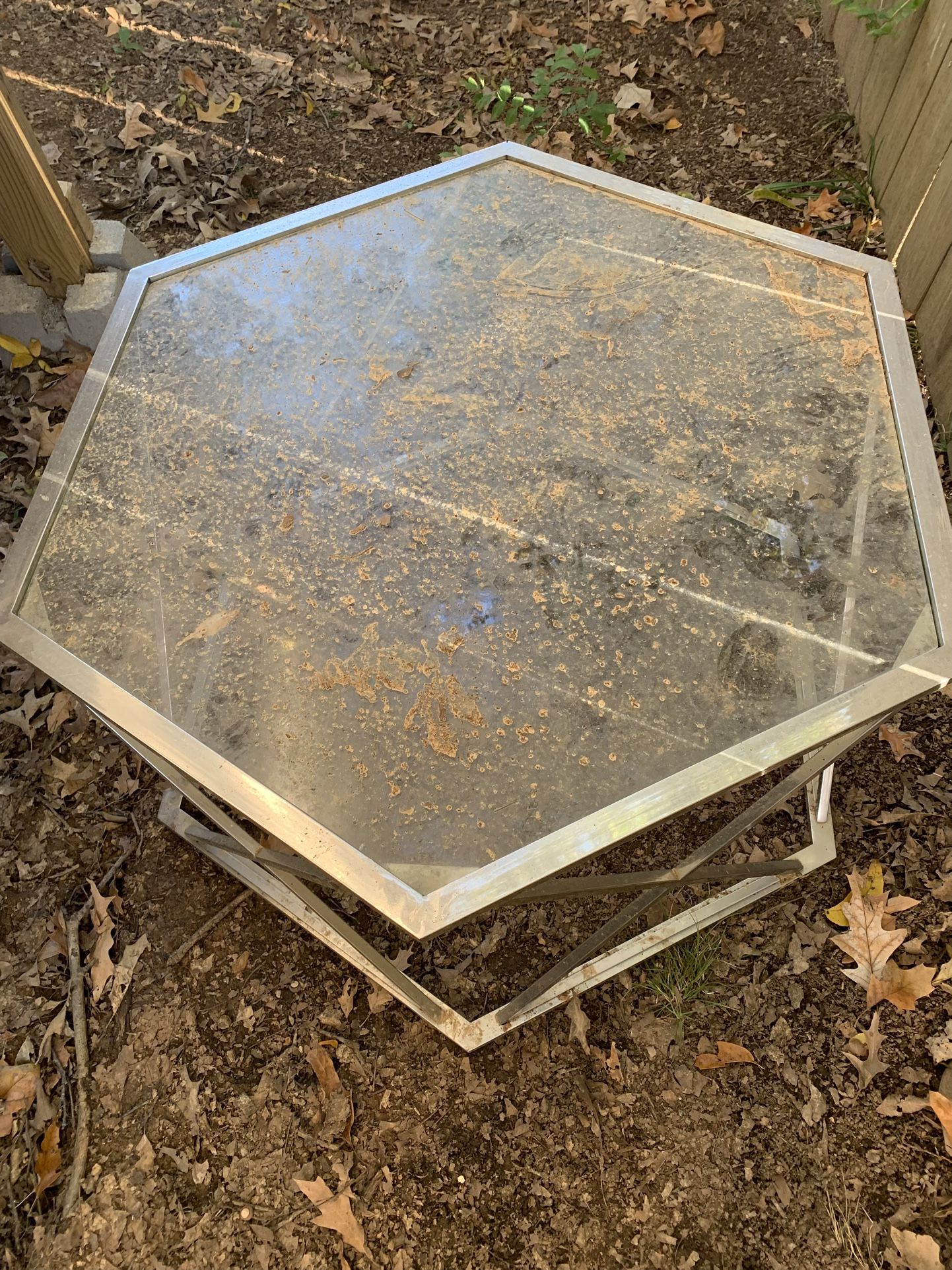 Hexagon glass table it does need to be cleaned up, but is in great condition