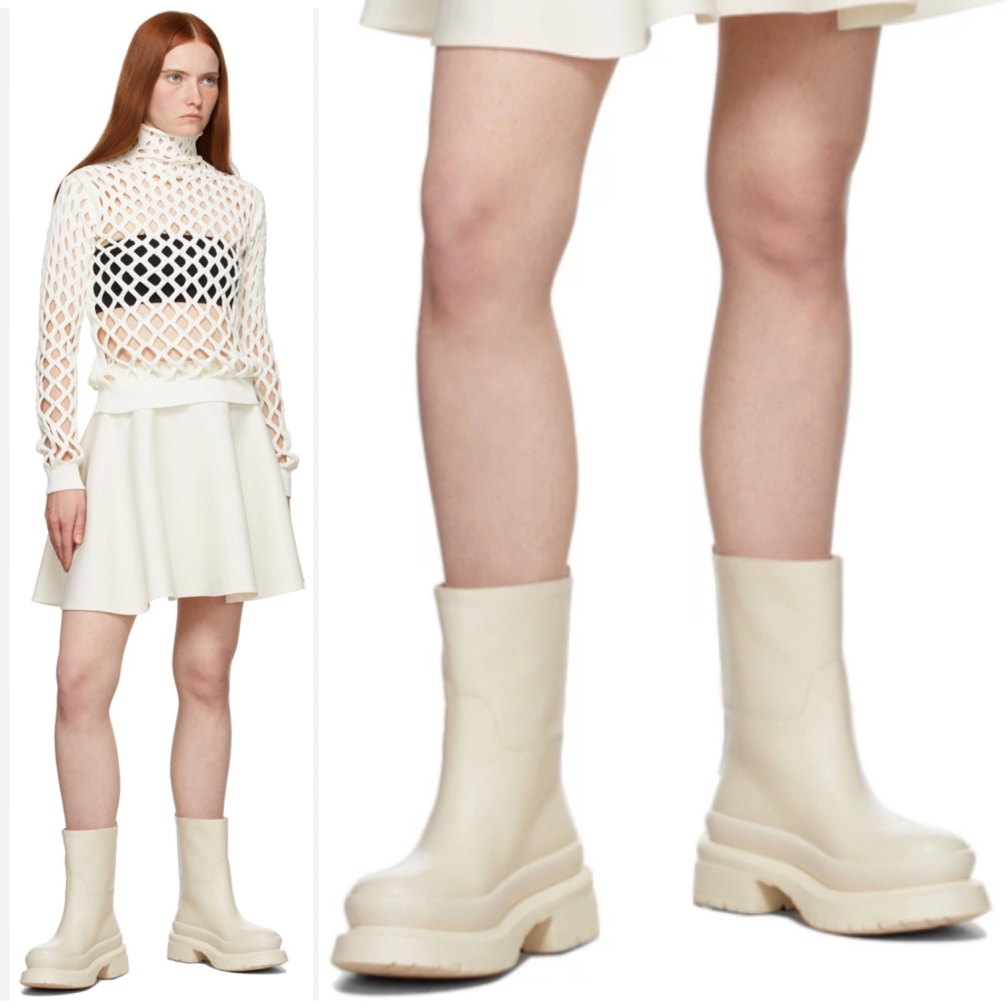 Valentino Garavani Off-White Roman Stud calfskin leather mid-calf boots 38 NEW