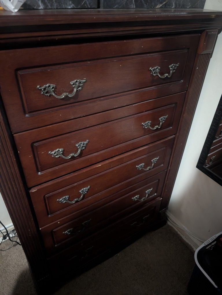 Chest of draw with 2 night stand, has a few scratches but very good quality wood.