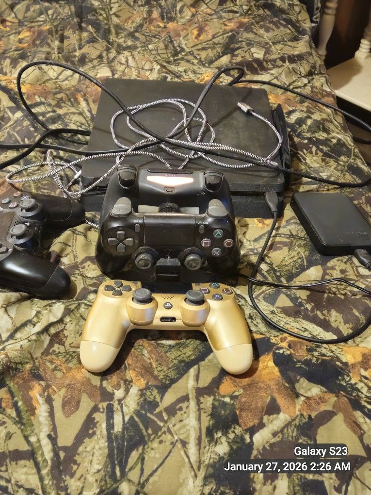 PS4 Slim, 4 TB External HDD, & 3 Extra Controllers