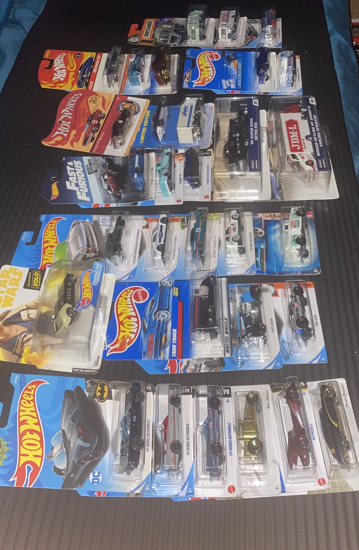 30 total hot wheels from 2017-2021 mostly willing to negotiate . Many go over 7 -10bucks as they are older . Feel free to message me I will not separate.