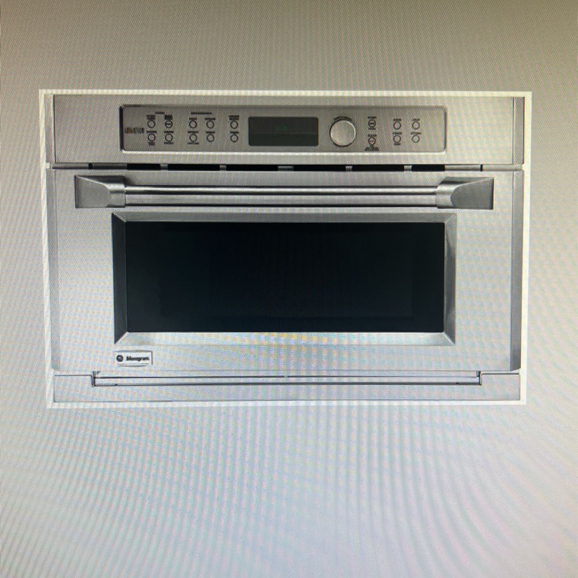 Brand new stainless steel 30” monogram electric advantium wall oven in the box never used or installed. Glass touch controls, true European convection, microwave, speed cook, toast, warmer, proof modes, cooking sensors and self cleaning.
