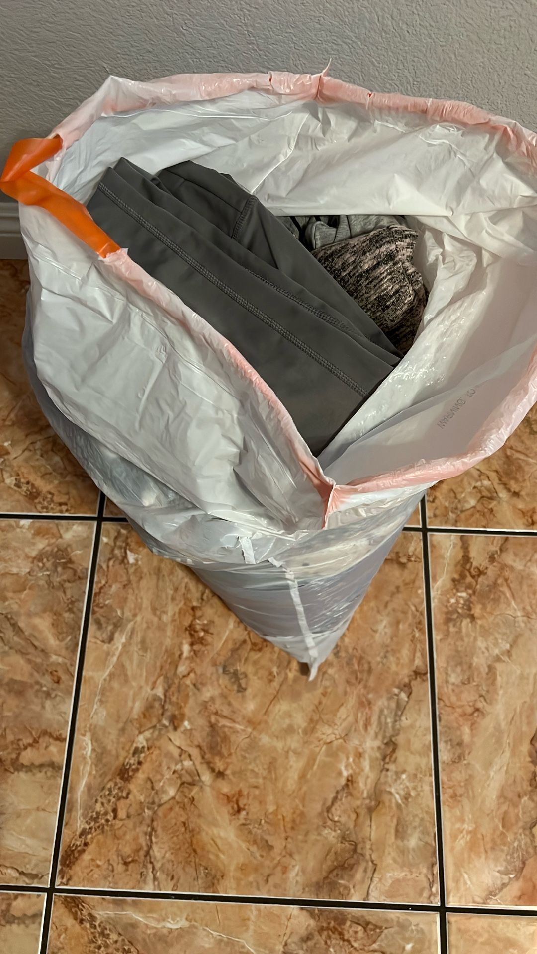 Bag filled with clothing for women - Sweaters, cozy socks, long sleeves, shirts, leggings