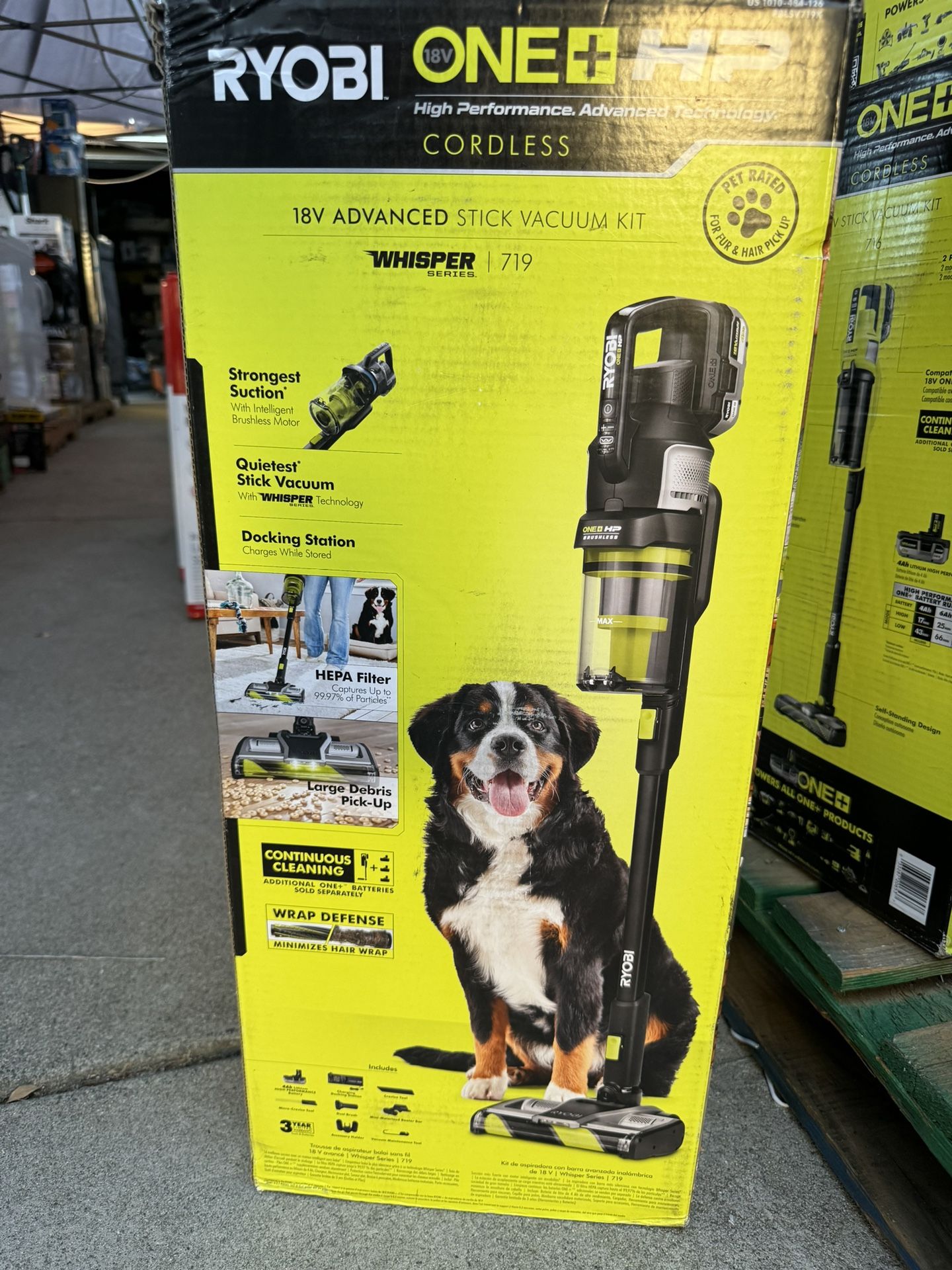RYOBI ONE+ HP 18V Cordless Advanced WHISPER Series Stick Vacuum Kit with 4.0 Ah Battery and Charger