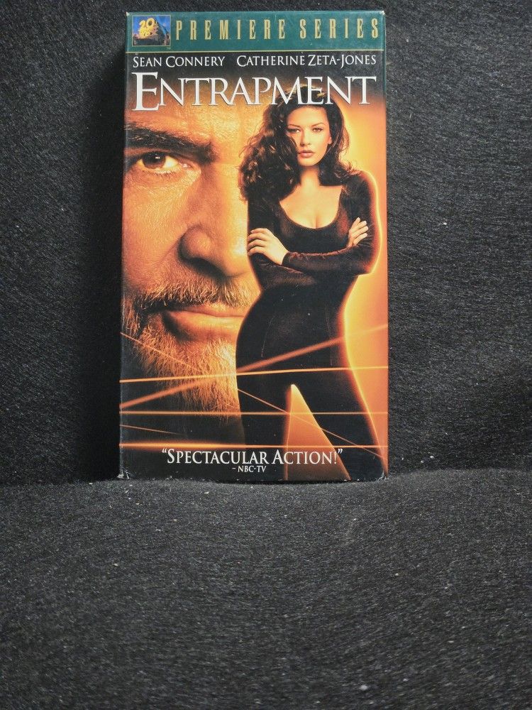 Entrapment with Sean Connery is a movie about an international Thief. The bank hires are beautiful investigator subtract him down and bring him to justice. Or at least pay back the bank he stole from. This is the original release and is in VHS format. Special running through January 31st by any five of my movies and get $5 off your order