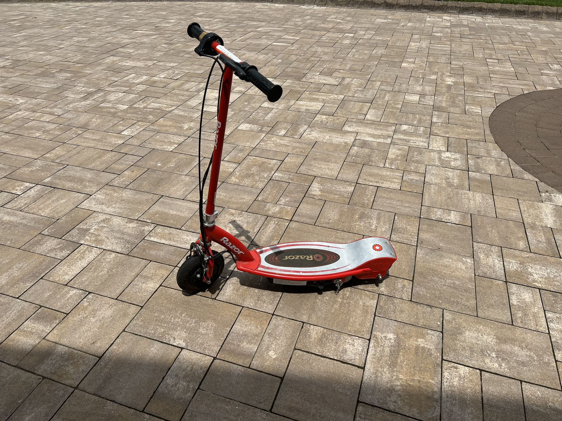 Razor electric scooter , for kids ages 8 and up can handle weight up to 120lbs / 54 kgs . Comes with charger . Cash only , pick up only , pet free house