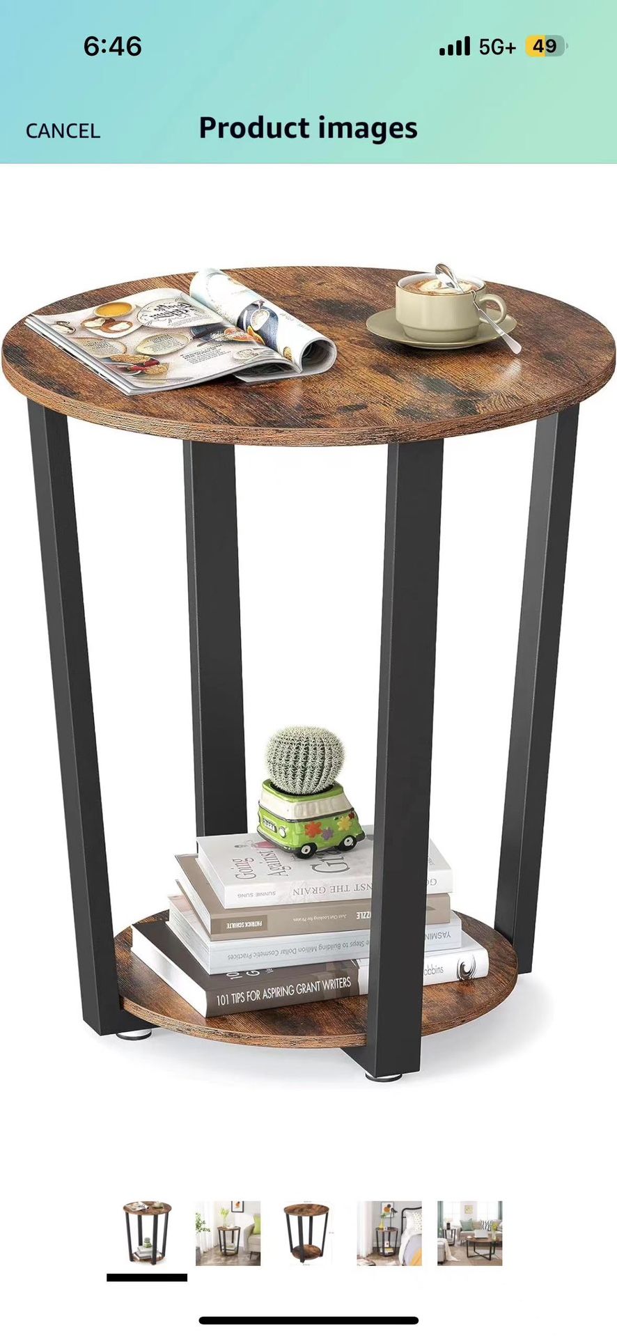 Table, Round Side Table with Storage Shelf, Easy Assembly, Industrial Accent Furniture with Steel Frame, Rustic Brown and Blac