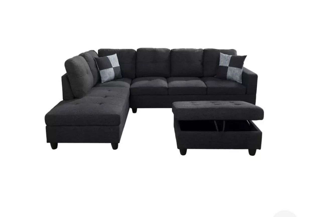 All brand new couches Black Gray. Fabric Linen 🚚delivery available