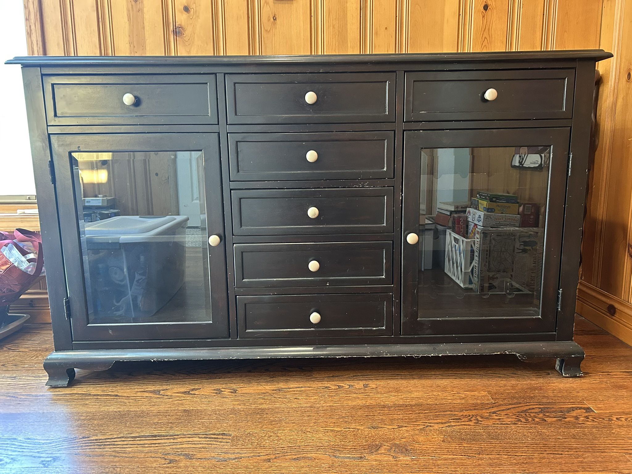 Black Wood Breakfront With Wine Storage
