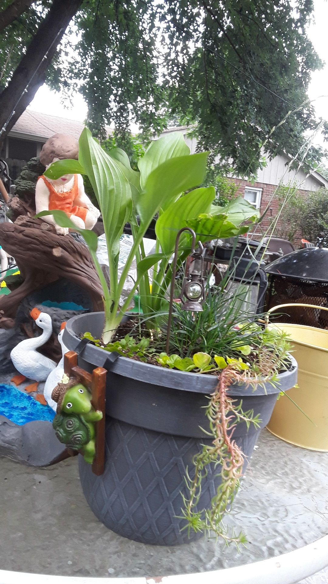 Have a variety of plants in nice little pot has hostas couple of succulents and a little bit of grass $15