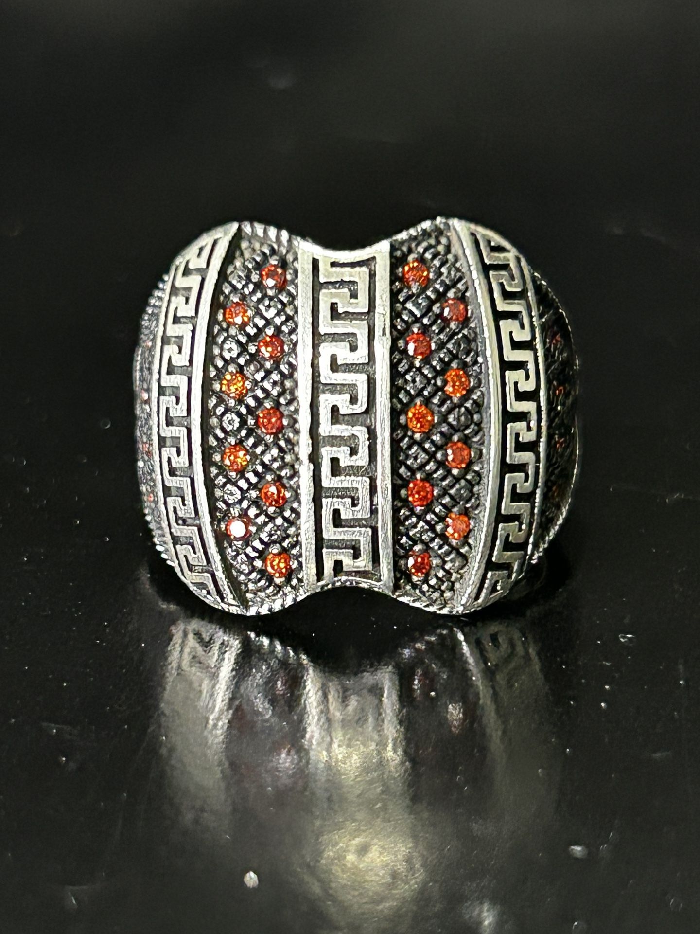 Vintage Ring Size 9.75 Silver 925 Red Ruby Turkish Pattern Large