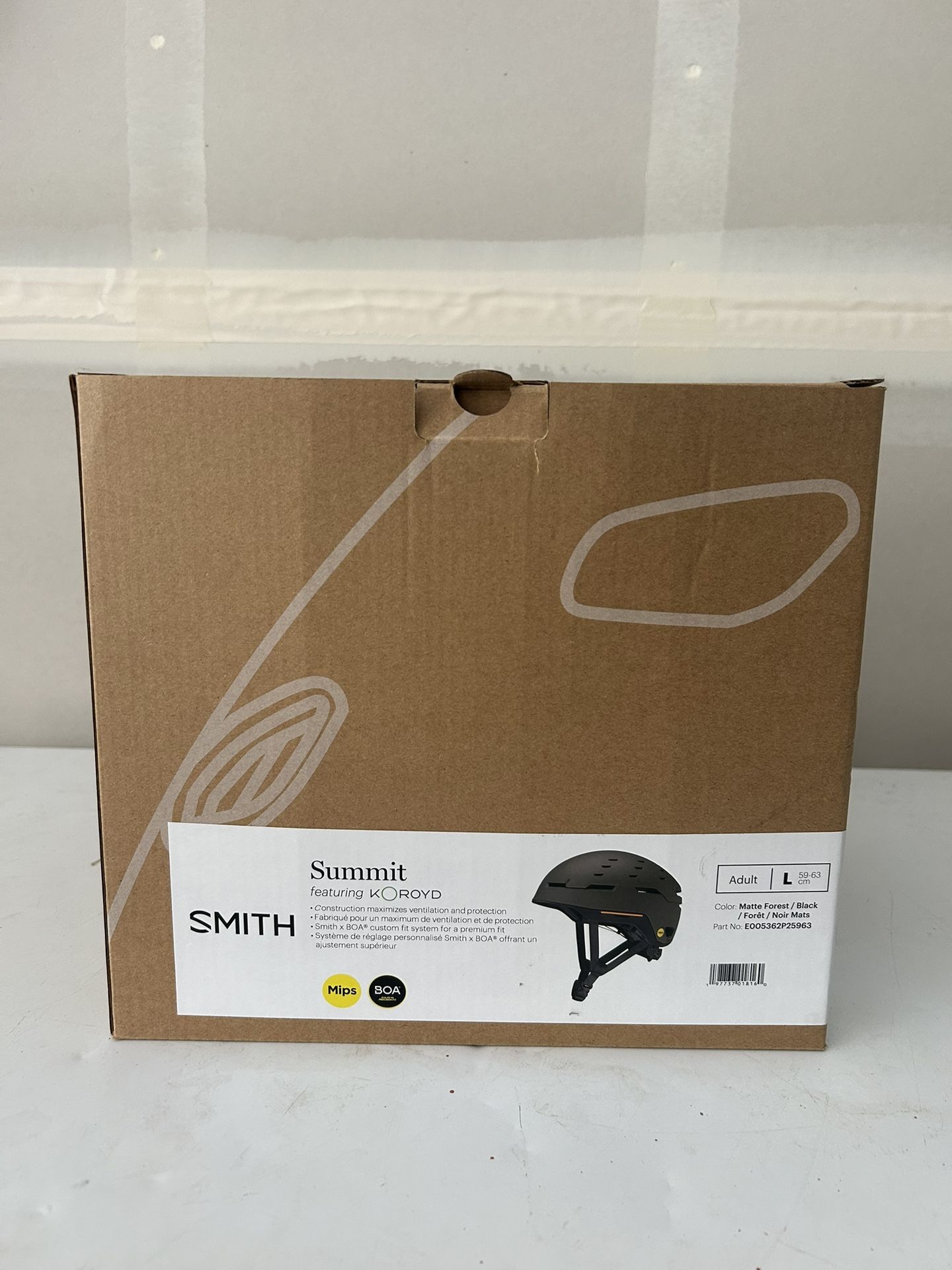 From smith - Go light. Go Far. From skin track to boot pack and summit bids, the Summit snow helmet is our lightweight go-to lid for backcountry touring and ski mountaineering. Its triple certified design meets global alpine ski certs plus international mountaineering standards. The design blends a minimalist approach with mountaineering-specific details to keep it ultra-light yet ready for alpine pursuits. Zonal KOROYD® and Mips® impact protection absorb energy in the event of a fall. Smith Flexible Fit System, featuring BOA® offers a micro-adjustable fit which also collapses into the helmet for easy stuffing into your pack. Bought and just never use. Just end up wearing my normal climbing helmet (don’t tell my wife) Size L. Message with questions
