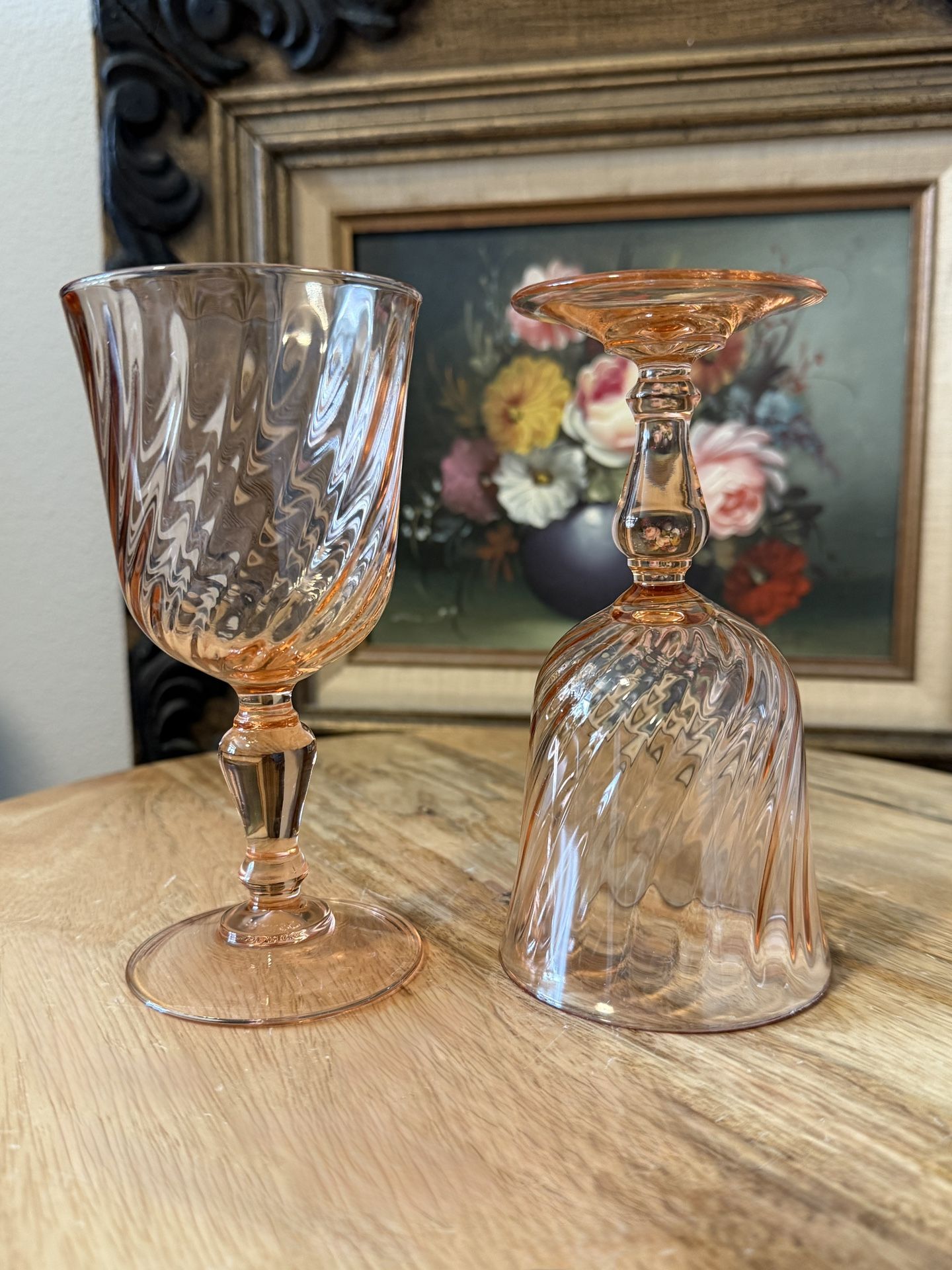 Pair of 2 Vintage French Rosaline Pink Swirl Glasses | Water Goblets | Wine Glasses | Pink Glassware | Girl’s Brunch