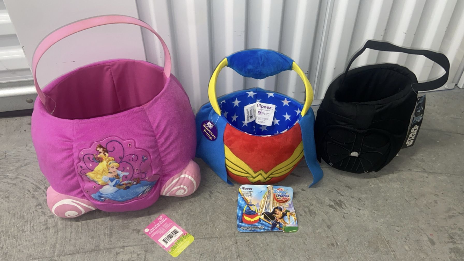 brand new Disney Easter baskets never used with tags. Princess large basket $10 Flipeez Wonder Women $5 Darth Vader basket $5. take all for $15