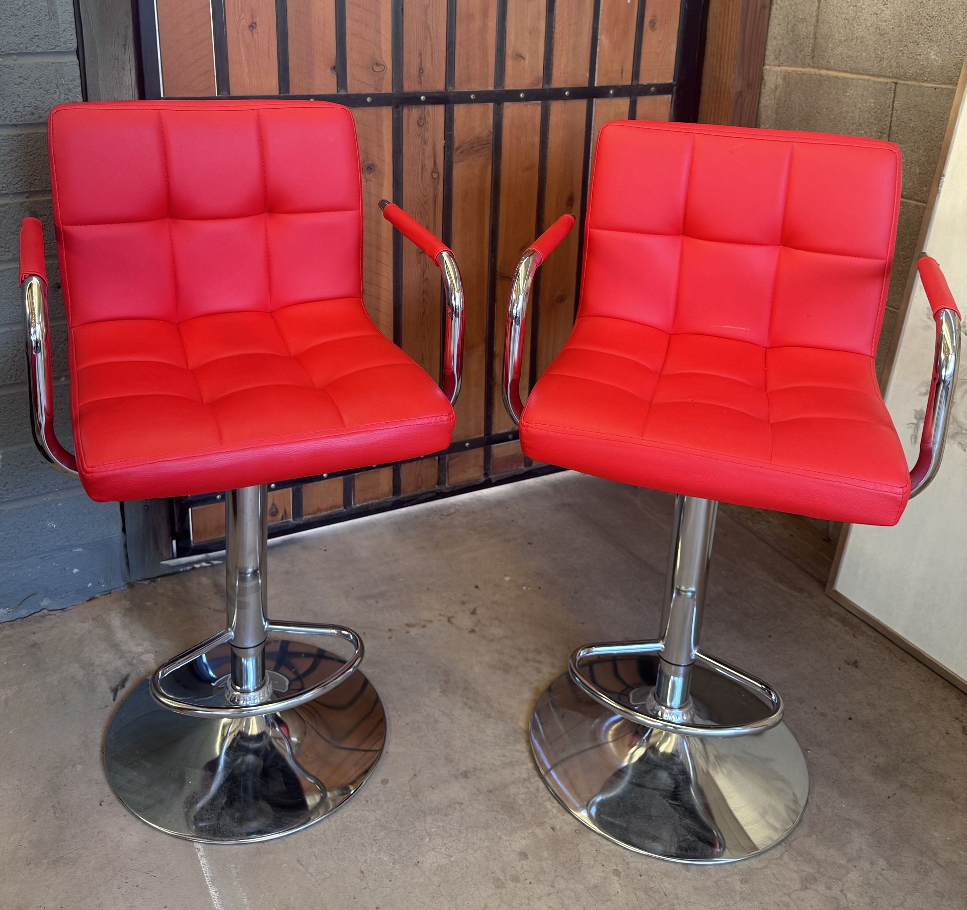 Red faux leather swivel barstool set.