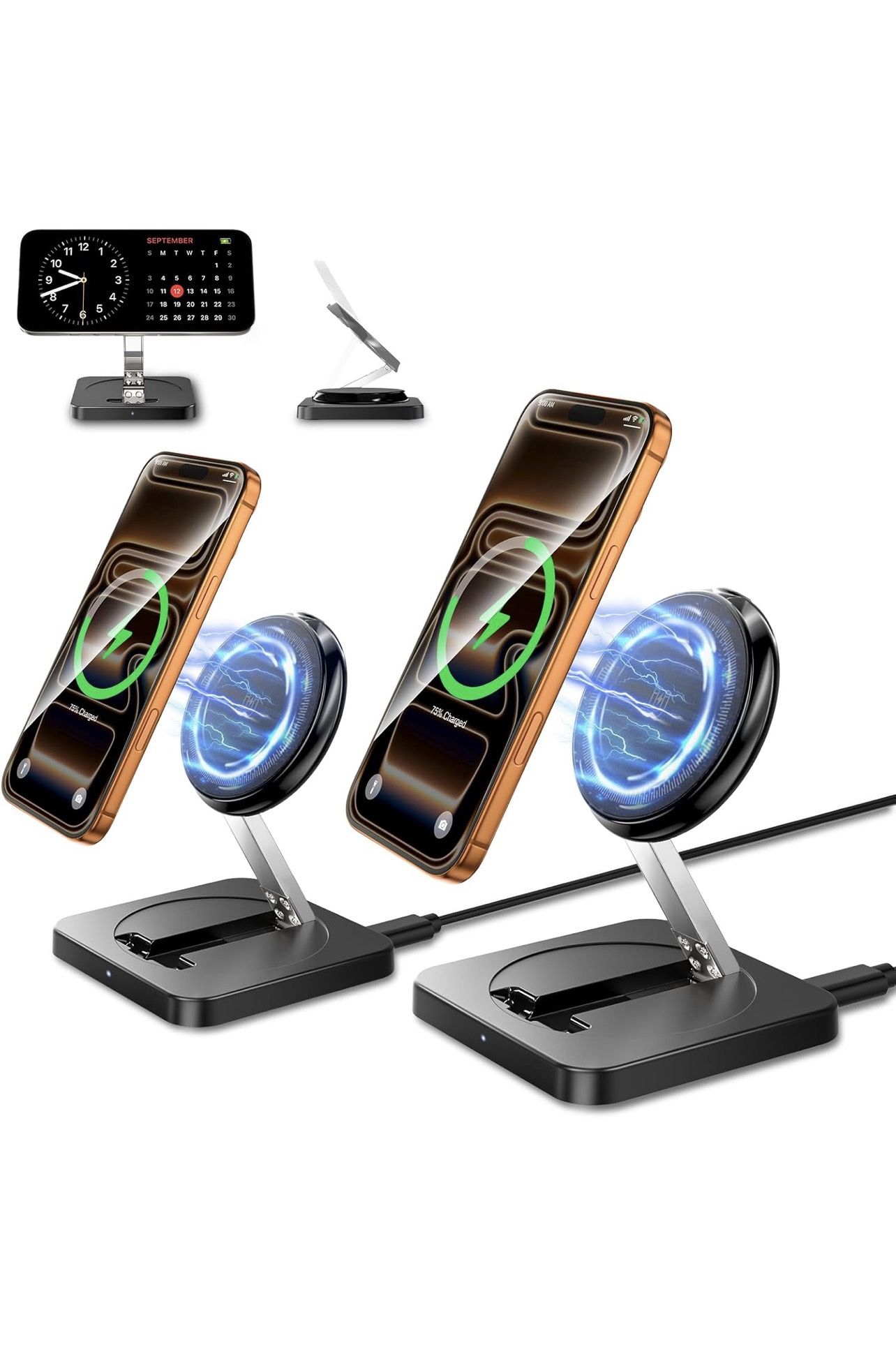 Cargador inalámbrico magnético, [paquete de 2] Soporte de carga rápida de 15 W para iPhone 17/16/15/14/13/12 Series/AirPods 3/2/Pro 2/3, estación de carga inalámbrica Samsung para Galaxy S25 Ultra/S24