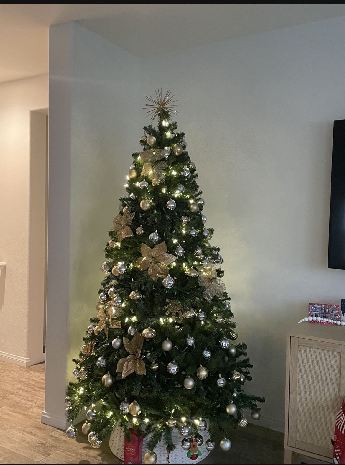 Time to save money for Christmas Tree. Selling my beautiful Christmas Tree. Very clean and looks new. Everything included. It includes: Tree, Christmas lights, all the decors (ribbon and Christmas balls) , big santa’s hat for chairs, beautiful silver star to put at the top and more Christmas balls (Blue, Silver and Gold) size can be 7-8ft. Please serious buyers only. And no low ballers. My price is very cheap for this kind of deal. Thank you