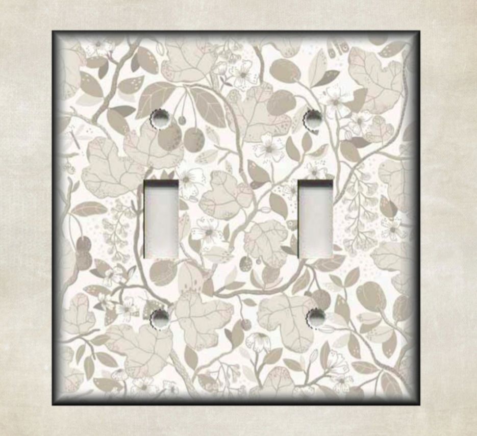 Beautiful brand new stainless steel metal switch plate cover in a lovely botanical William Morris style print of leaves, vines and flowers. Neutral taupe beige colors on a cream background in a satin finish. Comes with four screws with painted cream heads to blend in beautifully with cover. I bought this from a seller on Etsy but was too small for the area I wanted to use it on. Switch plate measures 4 1/2” wide x 4 1/2” tall. Local Burien pickup