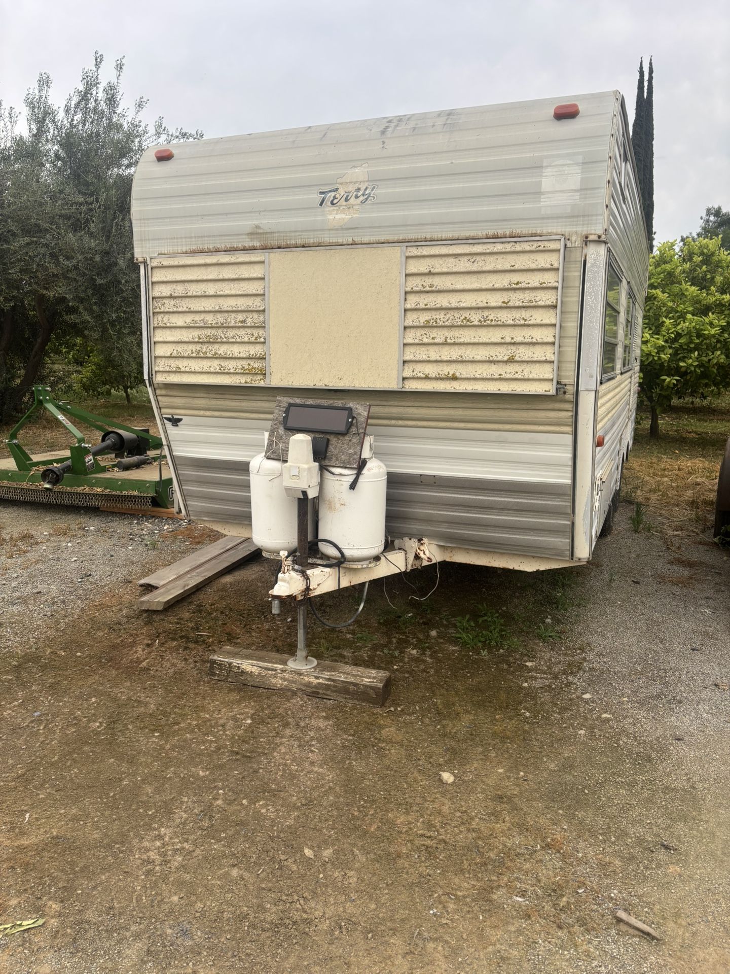 Inside is good for its age it’s got a lot storage compartments Everything inside works Selling as is 1,000 The stuff inside is stuff you’d want in a trailer when you go camping you can keep that stuff or I can throw it out It’s got the title 1 owner Tires could probably be replaced just because