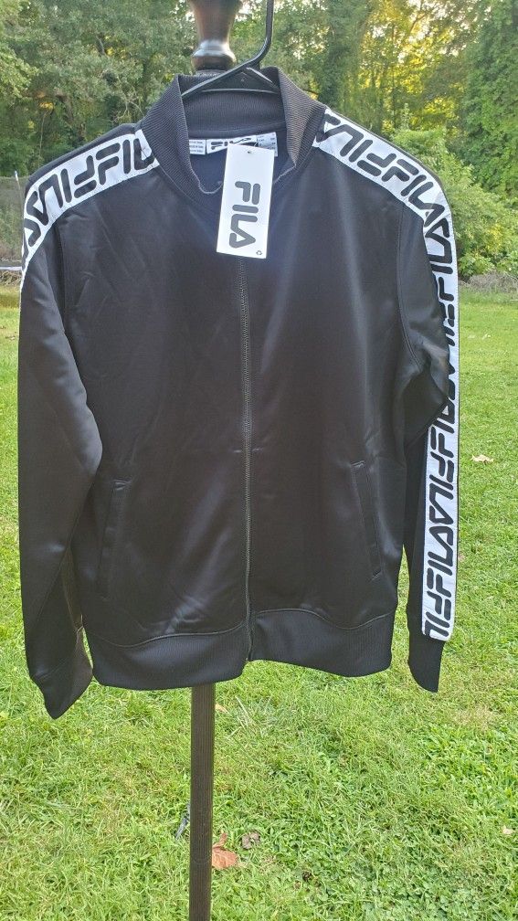 Fila Black Sleeve Spell Out Track Warm Up Casual Women's Jacket Size Small
