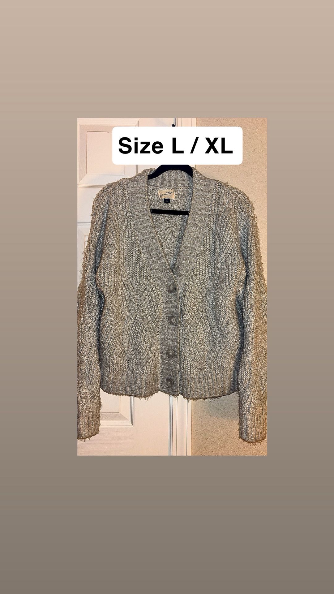 Very warm Universal Thread gray with silver metallic chunky knit cardigan. The tag says size s but it fits like size L/XL womens