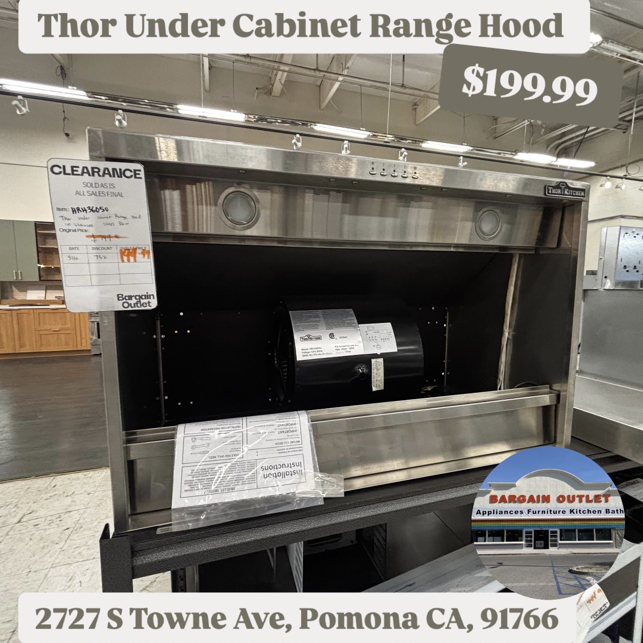 πŸ”₯ Thor Kitchen HRH3605U 36” Range Hood – Open Box DEAL! πŸ”₯ πŸ“ BARGAIN OUTLET 2727 S Towne Ave, Pomona CA, 91766 πŸ“ž 909-991-6755 πŸ•™ Open Everyday – 10 AM to 6 PM πŸ“… Yes, including weekends! πŸ•™ Estamos abiertos todos los dΓ­as, hasta los fines de semana, de 10 AM a 6 PM πŸ’Έ Financing Available – Fast & Easy! βœ… 100 Days Interest Free βœ… SNAP Accepted βœ… Hablamos EspaΓ±ol πŸ’³ Payment Methods: Cash, Credit/Debit (Visa & Mastercard), Zelle, and Financing πŸš› Delivery Available (Price depends on location & item) βΈ» Model: HRH3605U by Thor Kitchen βœ… 36” Stainless Steel Wall-Mount Range Hood βœ… Powerful 900 CFM blower – ideal for heavy-duty cooking βœ… LED lights + dishwasher-safe stainless steel filters βœ… Sleek, modern design – fits most kitchens βΈ» Condition: This is an open box item. There may be minor cosmetic flaws, but we do our best to show all angles in photos so you can inspect. Have questions? Just give us a call! βΈ» πŸ†• NEW INVENTORY ARRIVING MONTHLY! Check out: πŸ›‹ Furniture | πŸ“Ί Appliances | 🍽 Dining Sets | πŸ› Bedroom Furniture | 🏠 Costco Home Goods πŸŽ‰ Come find your next deal at BARGAIN OUTLET! πŸŽ‰ βΈ» β€’ #ThorKitchen β€’ #HRH3605U β€’ #36inchRangeHood β€’ #KitchenUpgrade β€’ #OpenBoxAppliances β€’ #PomonaDeals β€’ #RangeHoodSale β€’ #ApplianceOutlet β€’ #StainlessSteelHood β€’ #HighCFMRangeHood β€’ #FinancingAvailable β€’ #DeliveryAvailable