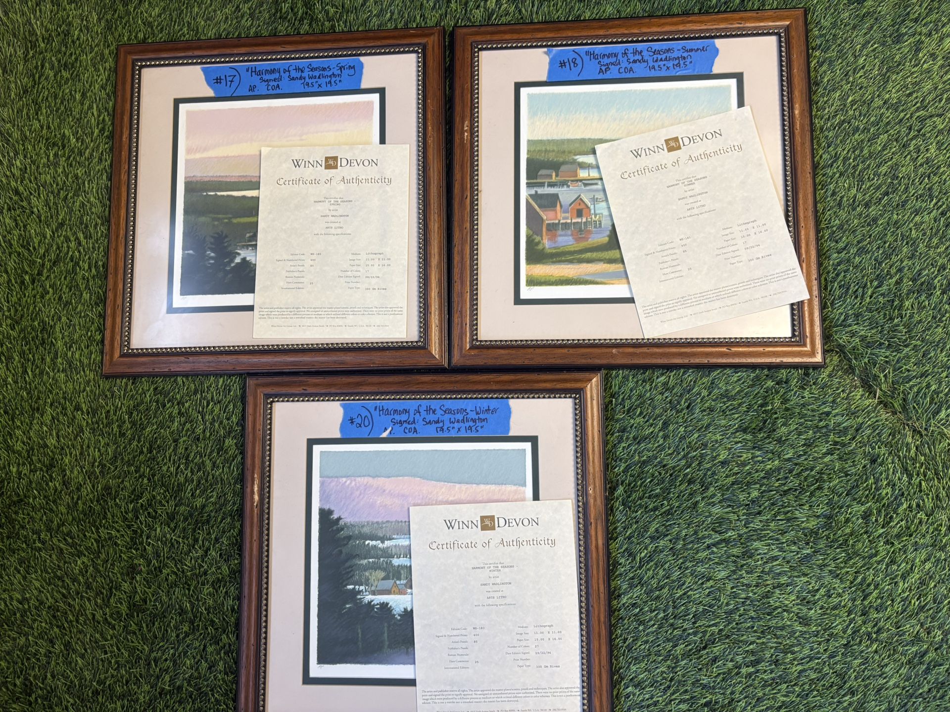 Summer Spring Winter Autumn- needs new frame 19.5x 19.5” Signed by Sandy Wadlington AP C.O.A 9/24/1994 All for $100