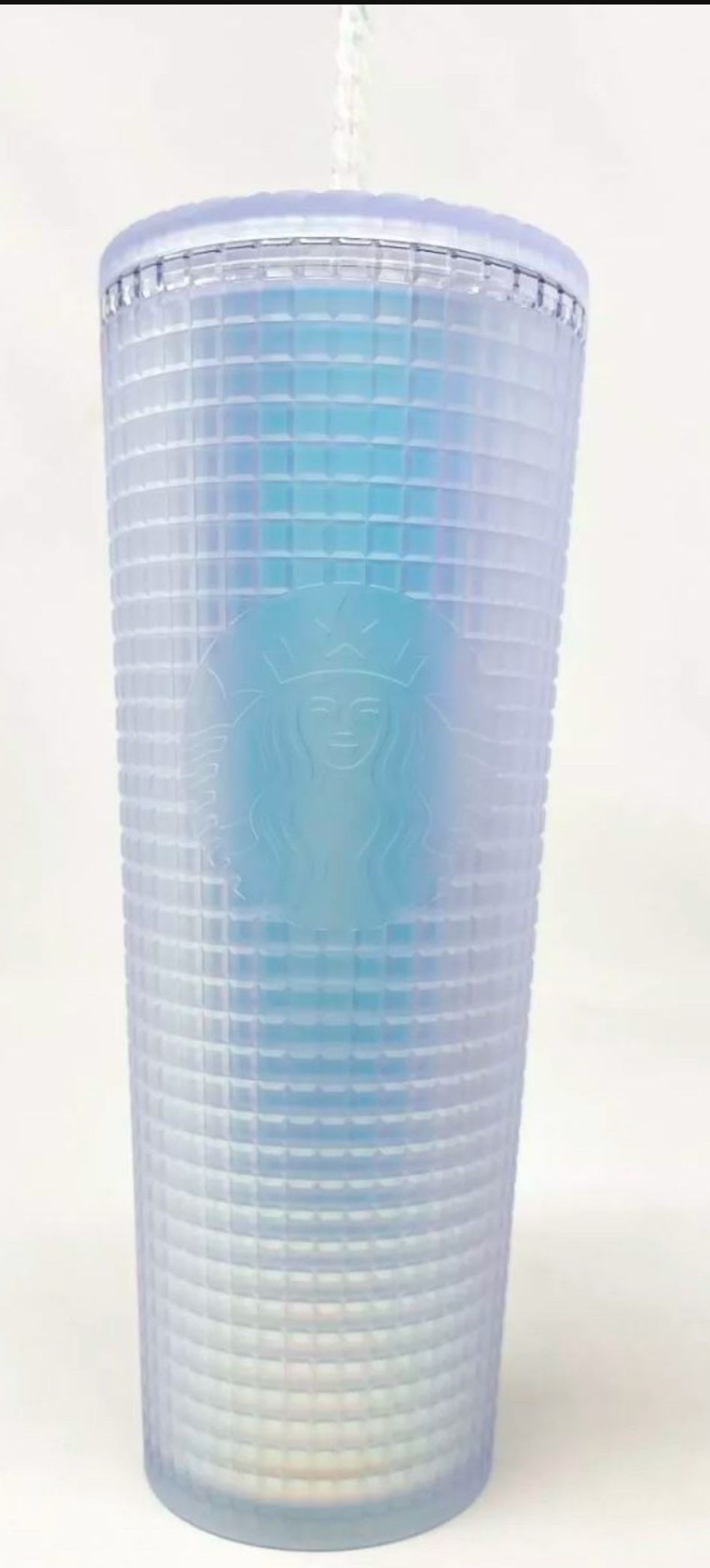 New With Tag Starbucks Soft Touch Clear White Iridescent Tumbler 24 Oz