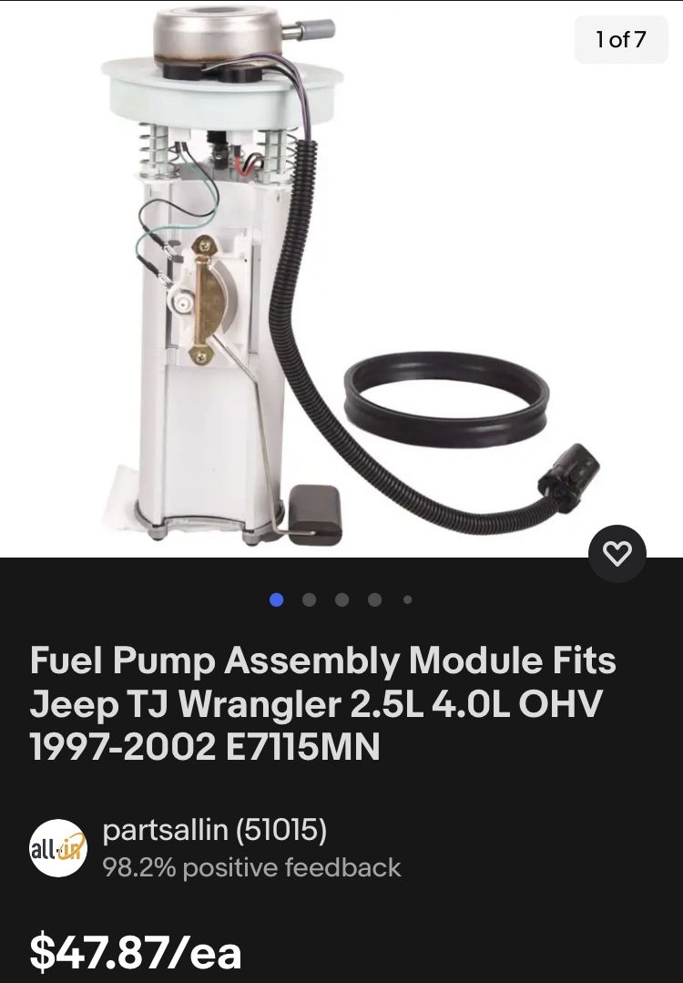 Fuel Pump Assembly Module Fits Jeep TJ Wrangler 2.5L 4.0L OHV 1997-2002 E7115MN