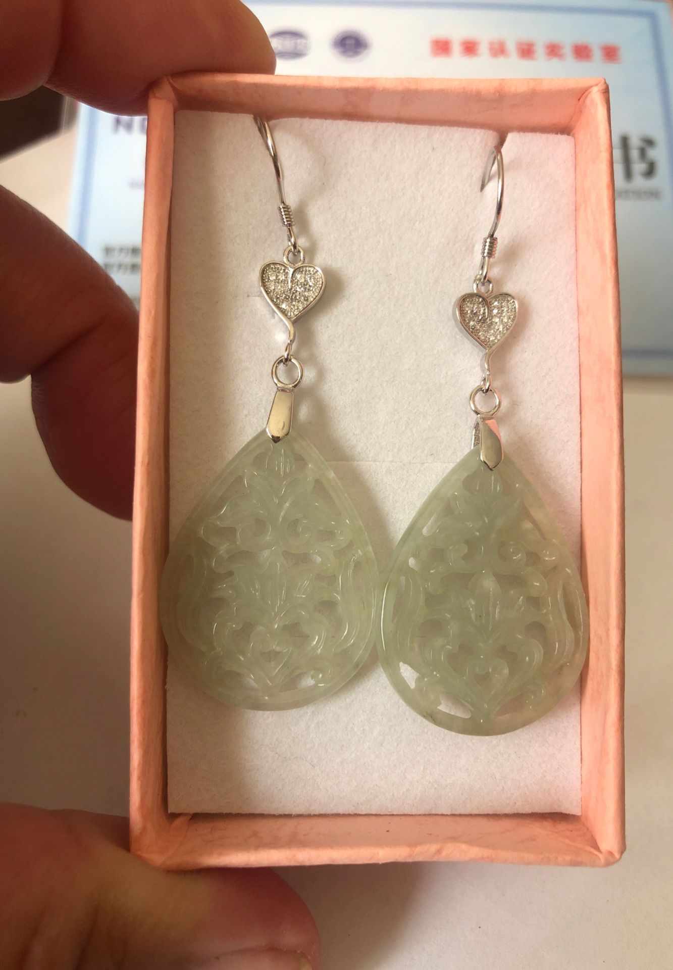 Jade size :30mm , from the fish hooks to the top measure the earrings :60mm 925 stamp this item comes along with certificate