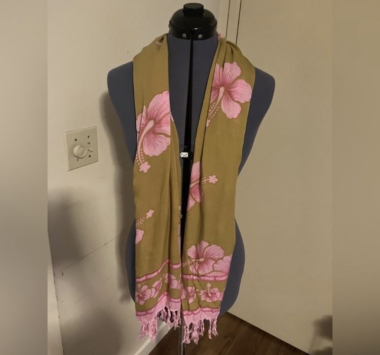 Touch of Hawaii Beige with Pink Hibiscus Scarf