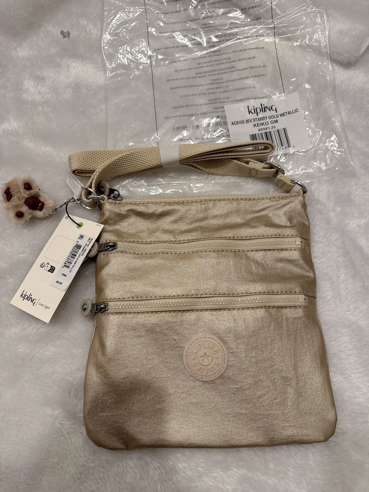KIPLING AC8103 Starry Gold Metallic Keiko Crossbody Bag