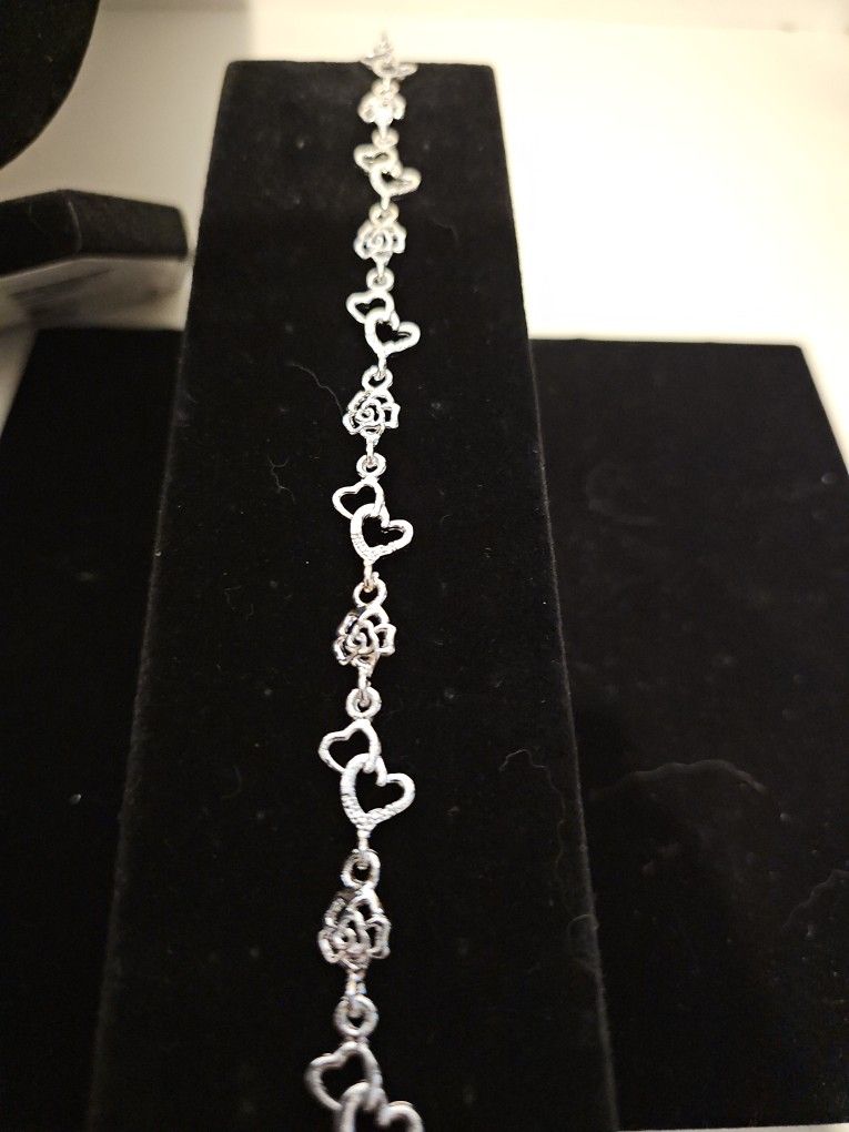 New Silver Double Heart and Flower Bracelet 7.5 to 9.5 inches