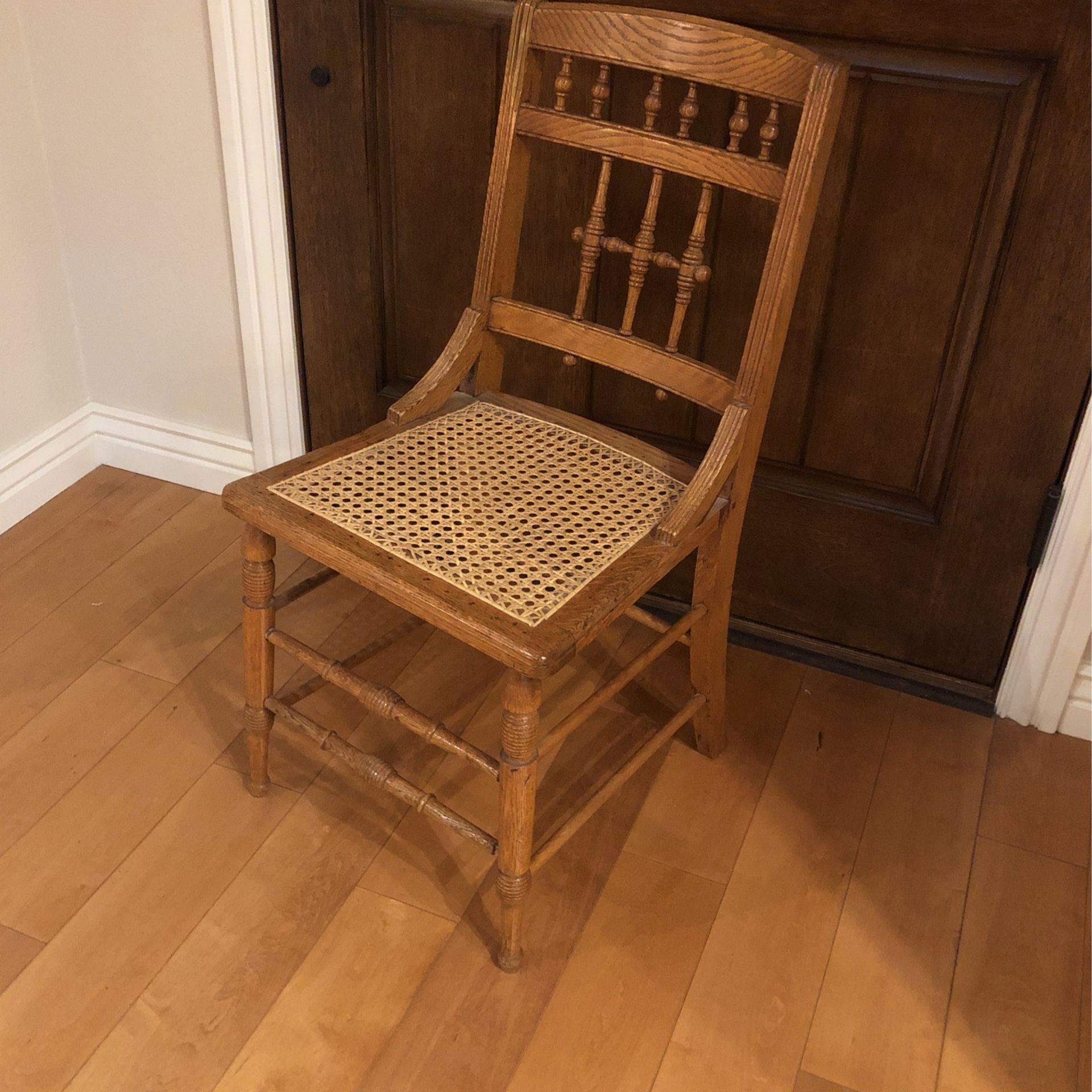 Cute antique chair in great condition. Caning is in tack and was hand done by my in-laws. Chair is originally from Iowa
