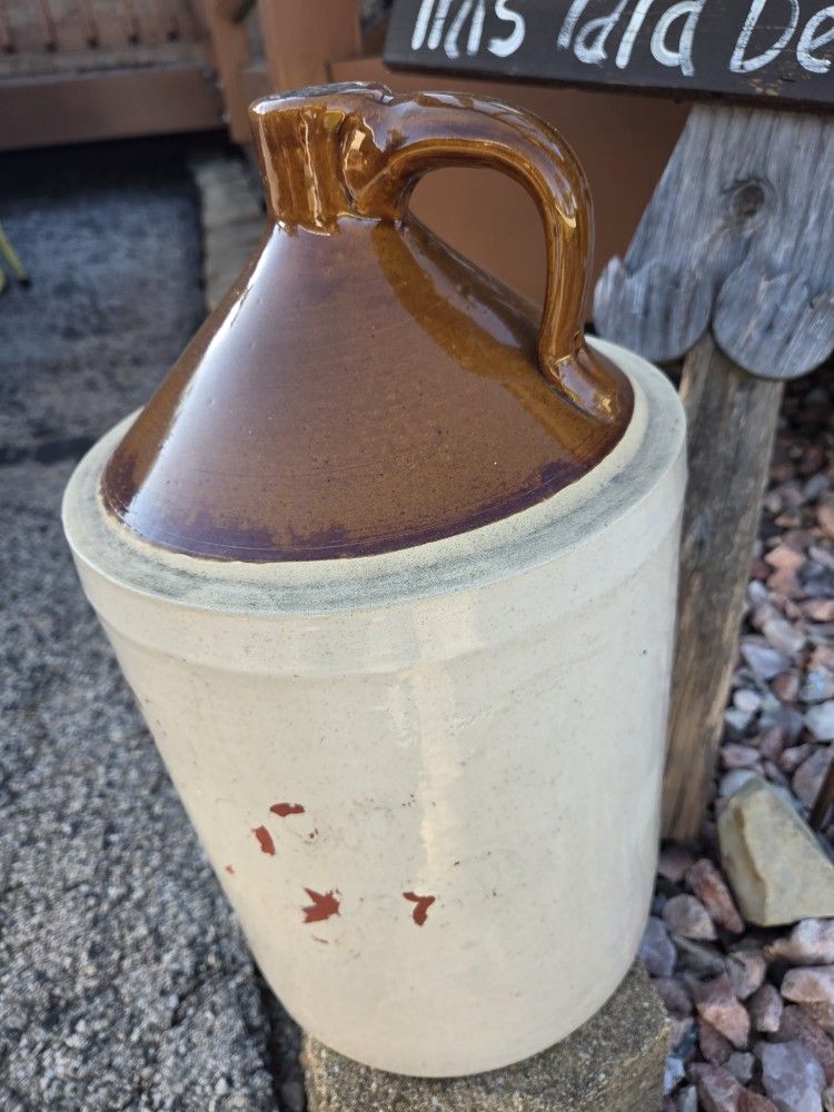 Stoneware Pottery Jug 2 Gallon Shoulder Crock Jug Handle Antique Primitive 17"