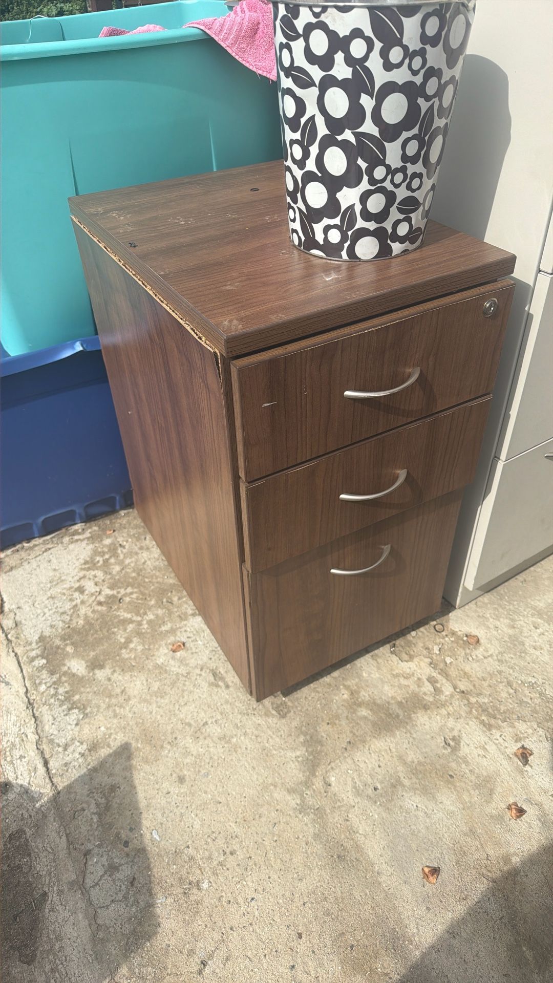 Side of it kinda coming off but nothing glue can’t fix u can have it with purchase of other file cabinet or 20 bucks no key