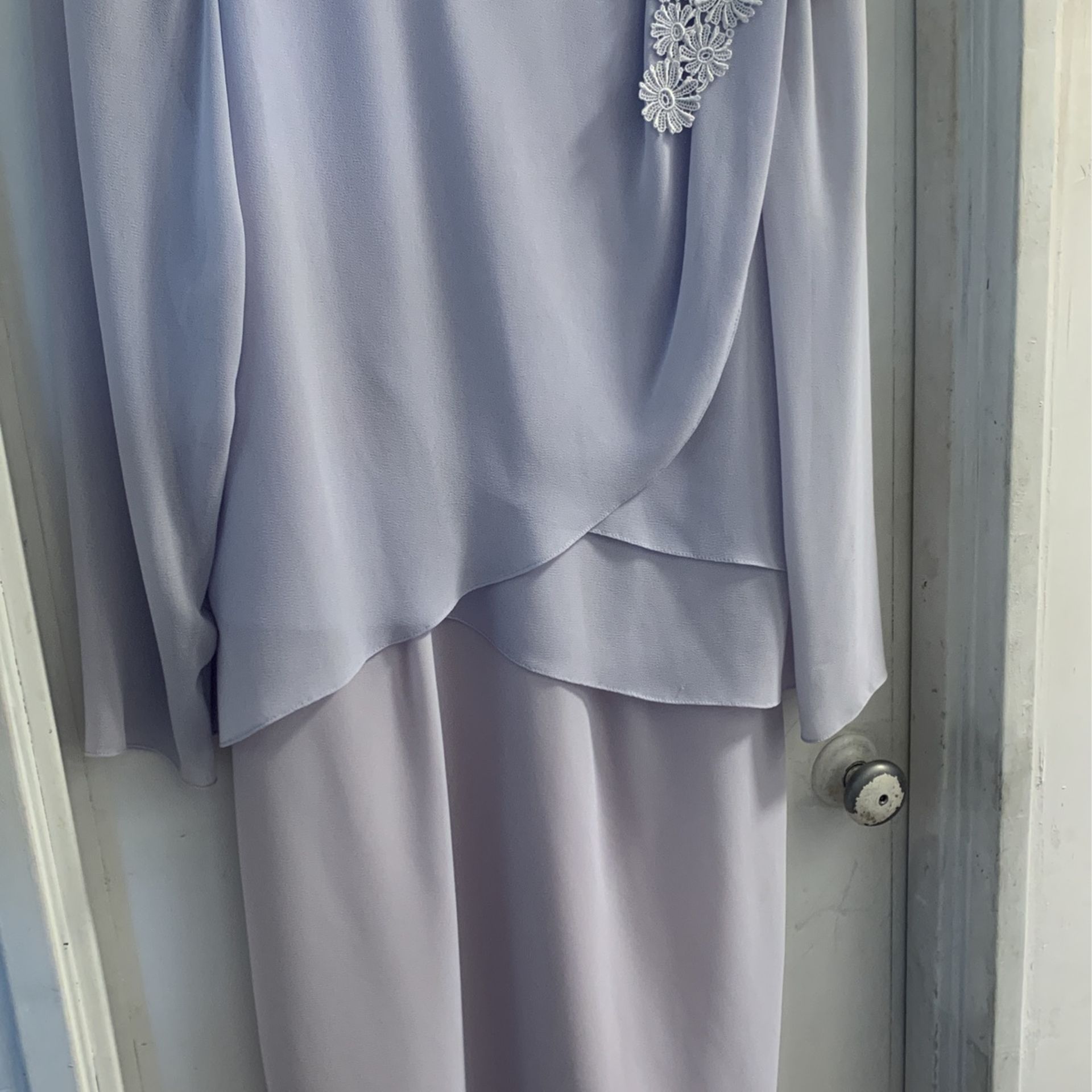 Long sleeve woman dress size 8 petite I got it as a gift ,but it is not my style . Even though I have never worn it still I see few very small stain on the bottom of skirt (it is not noticeable )