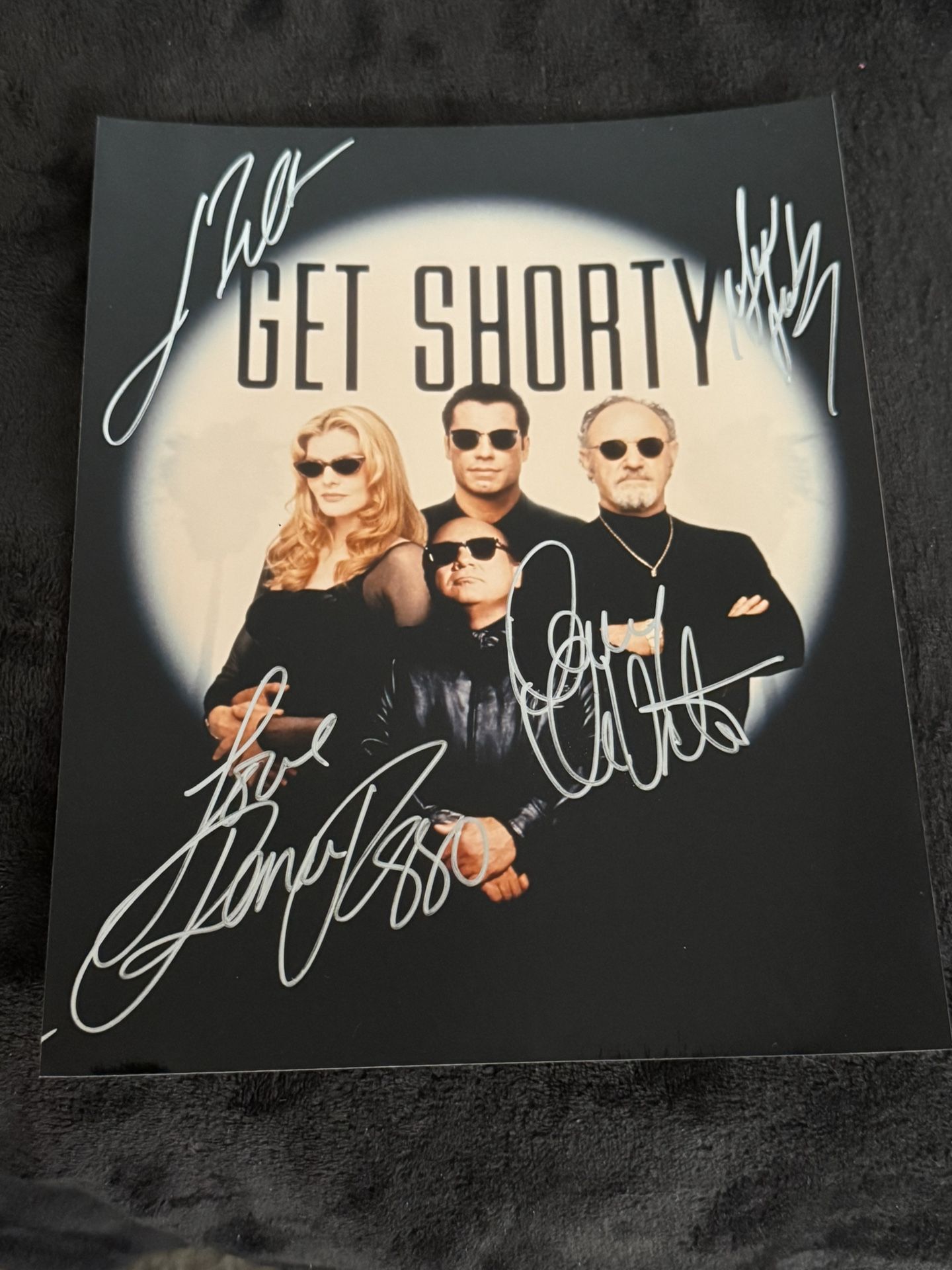 Personally Hand-Signed Autograph by John Travolta Gene Hackman Danny DeVito Rene Russo They all four hand-signed this 8x10 for the Celebrity Charity auction in 1996 to promote the movie “Get Shorty” Authentic Hand-Signed Autograph I purchased this original 8x10 photo autographed in 1996 at the KIIS FM KIIS and Unite Charity auction in Los Angeles Reduced to sell quickly 🙏