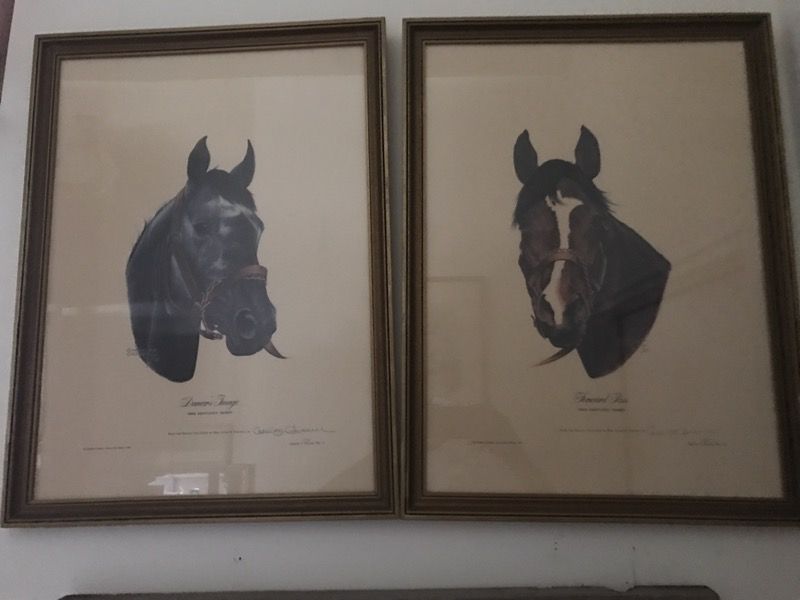 Dancer's Image and Forward Pass. 23.5"x18.25". Both are signed by Charles Carroll. If you Google Dancer Image there are great articles about this horse.