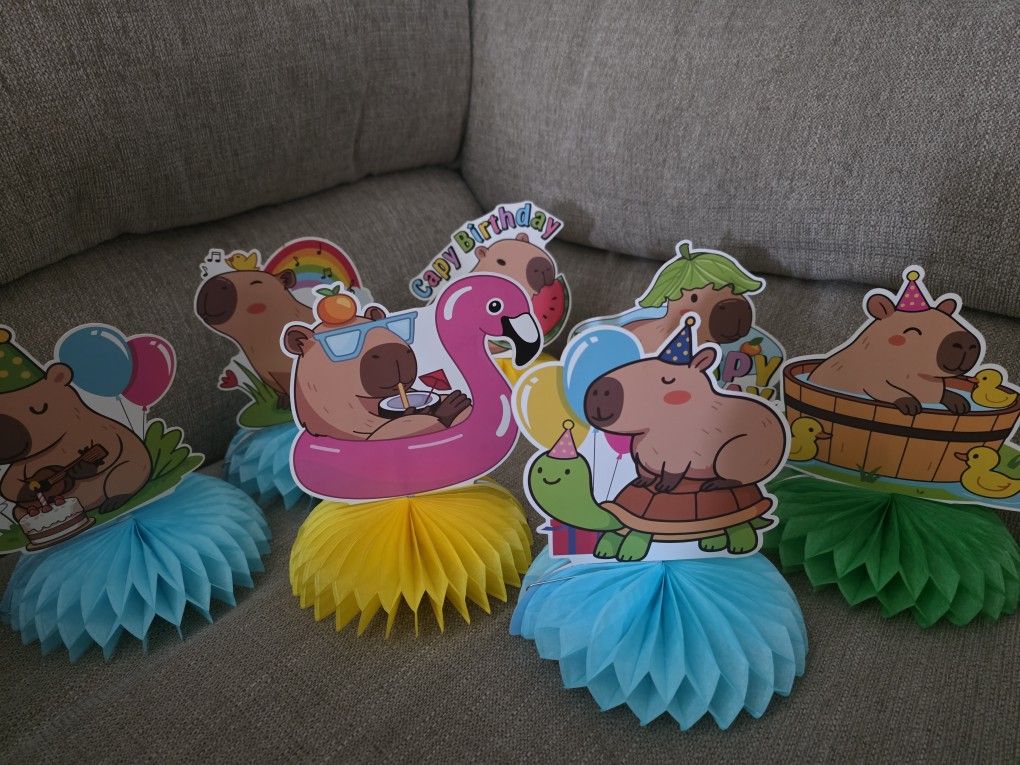 Birthday Decoration for table tops etc. 7 capybaras about 7 inches tall each. New