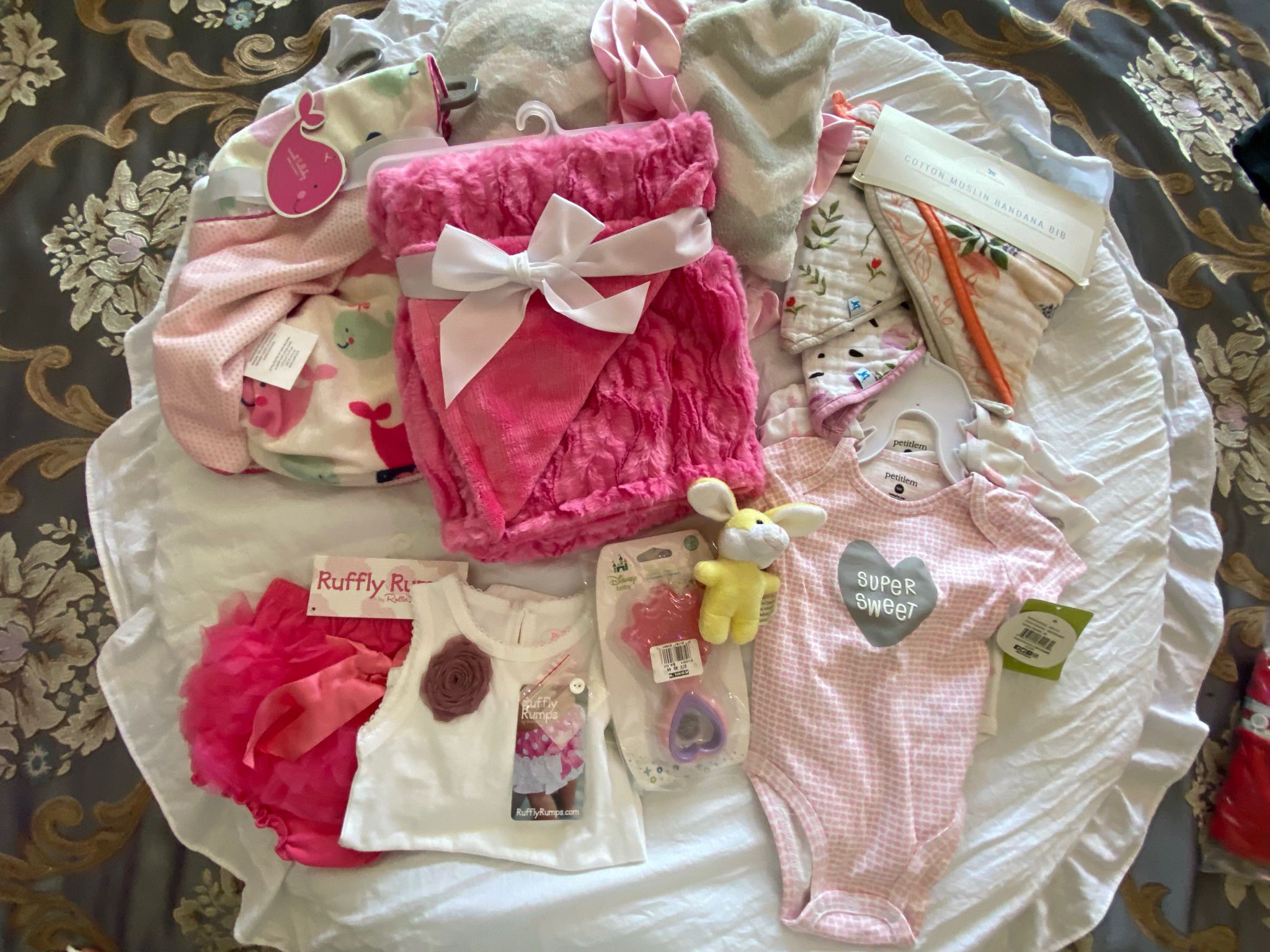 Are you last minute like me, Need a gift? Super cute baby shower gift ready to go. Everything new. Just needs to find a home. Need a new baby baby shower gift? Look no further. 3 extra soft blankets, a princess castle rattle/teether, a set of 3 onesies, 4 Muslim heavy duty bids, Ruffy Ramps tutu and tank top outfit. Won’t last. Let me know if you need a gift bag.