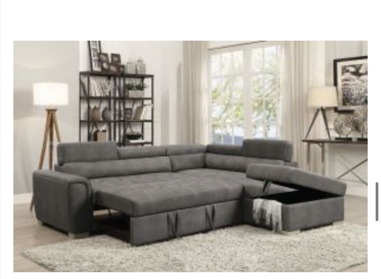 New in box sectional with ottoman pull out bed Financing available no credit needed