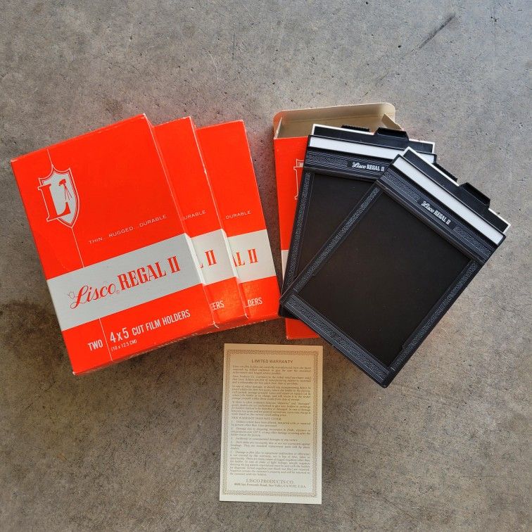 8 - 4x5 Film Holders Super Clean. Comes in original boxes. Brand/Model - Lisco Regal II