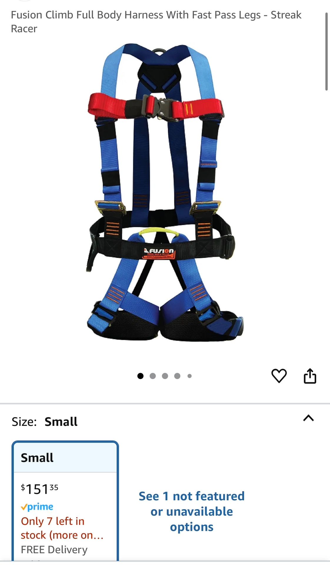 Fusion Climb Streak Racer Full Body Padded Professional Zipline H Style Quick Release Harness Blue Size S 20TH STREET AND OSBORN