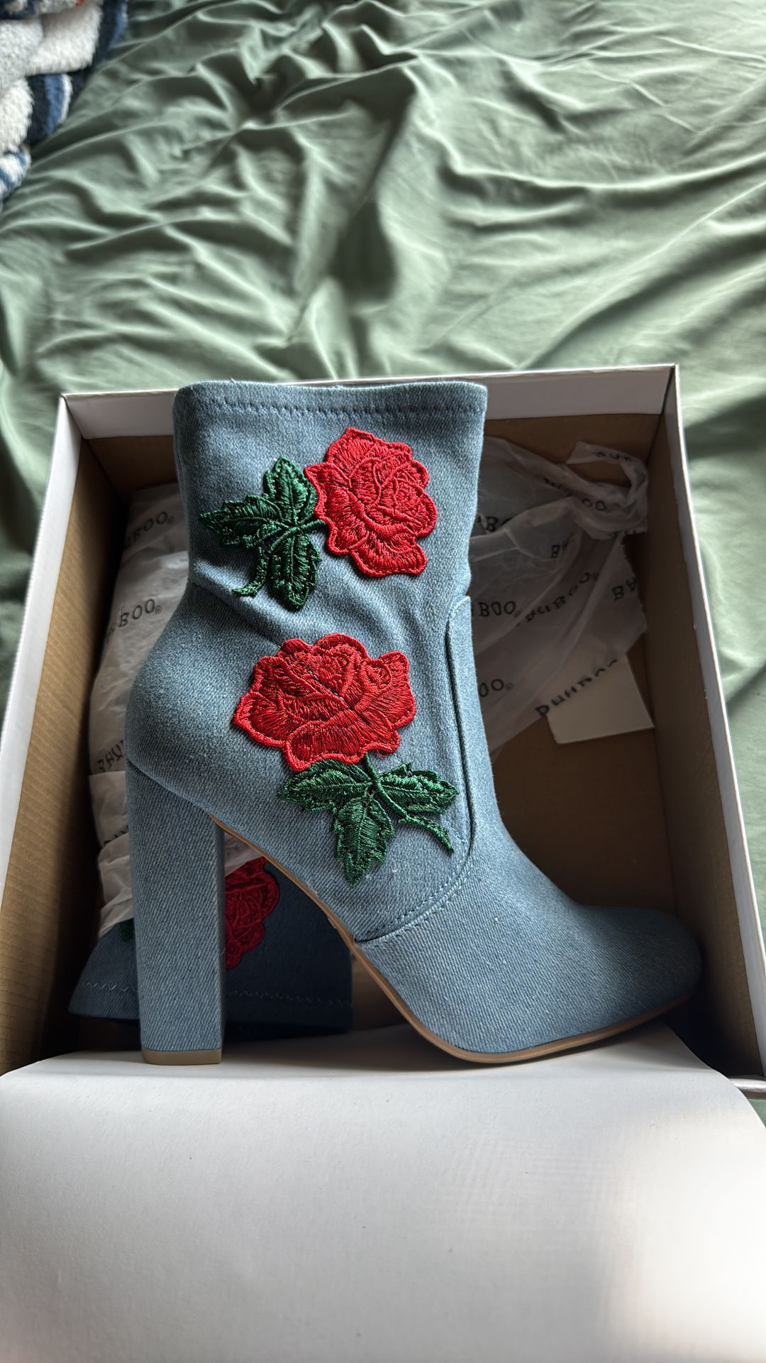 Rose denim boots