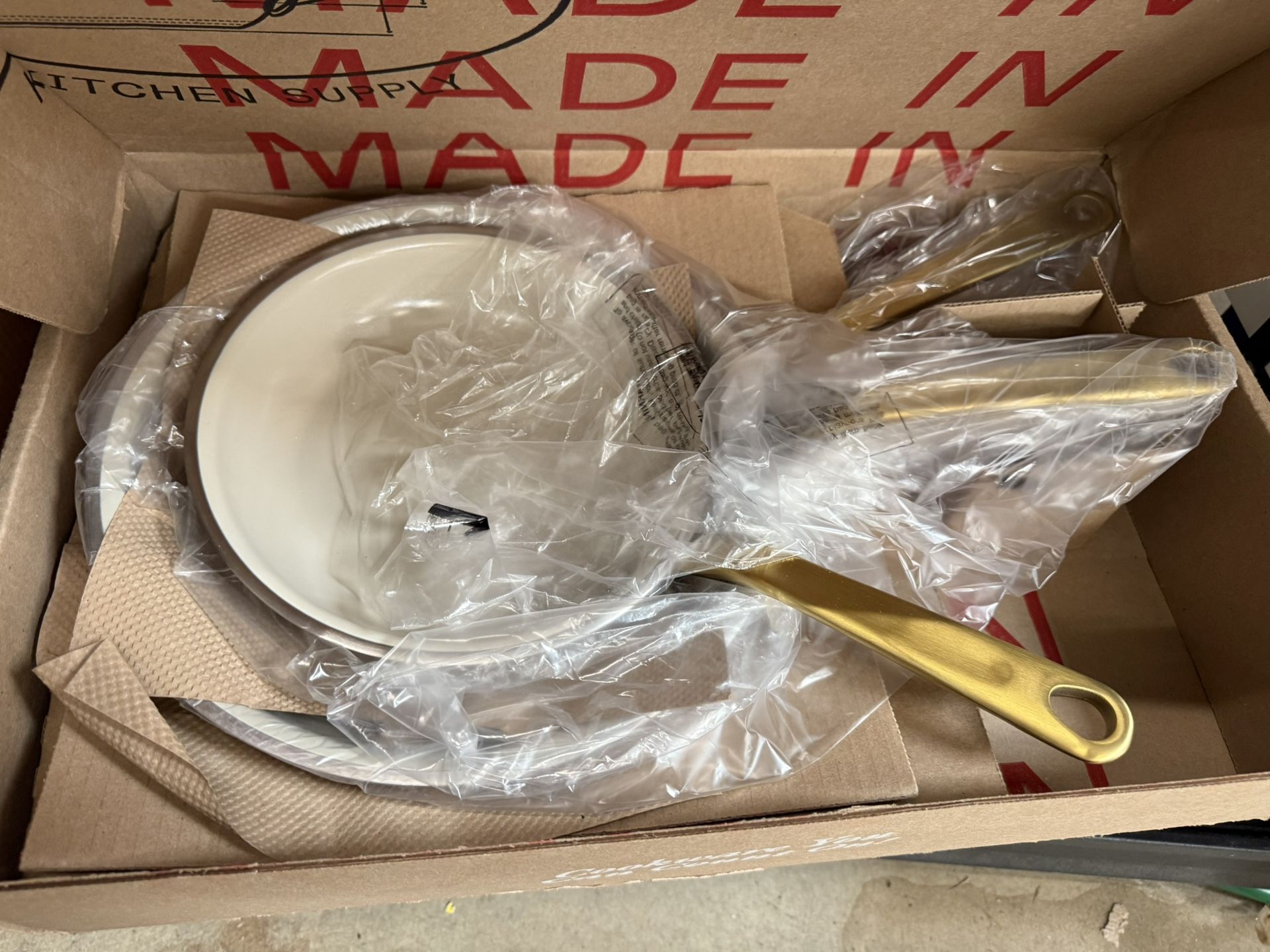 Made In Cookware - 3-Piece (Includes 8",10",12") Ceramic Non Stick Frying Pan Set (Gold Handle) - 5-Ply Stainless Clad with Stay-Cool Handle - Pr